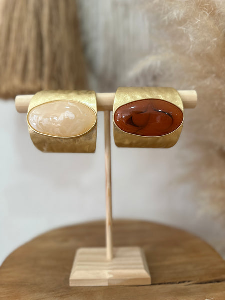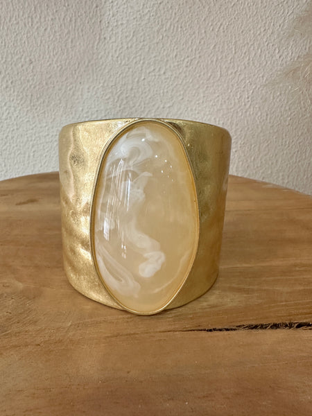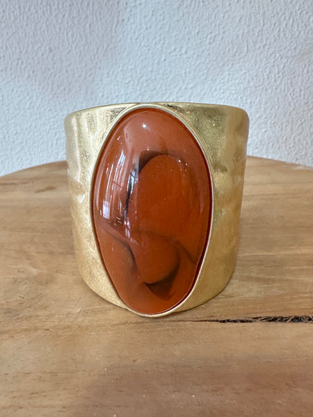 Pulseira rígida em aço com detalhe em acrílico, com abertura com mola