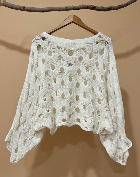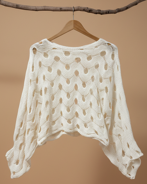 Camisola creme de malha vazada - detalhe ombro e decote