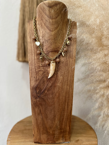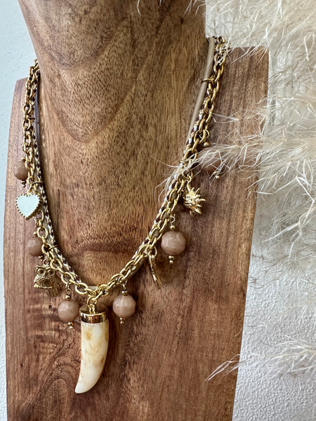 Colar curto em corrente dourada e cordão maleável, com detalhes em acrílico, corrente de ajuste e fecho lagosta