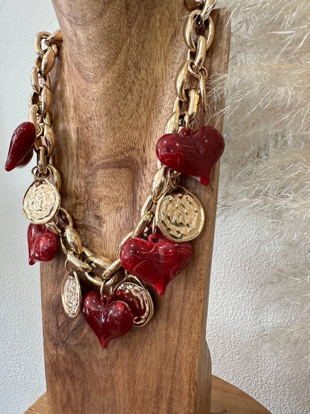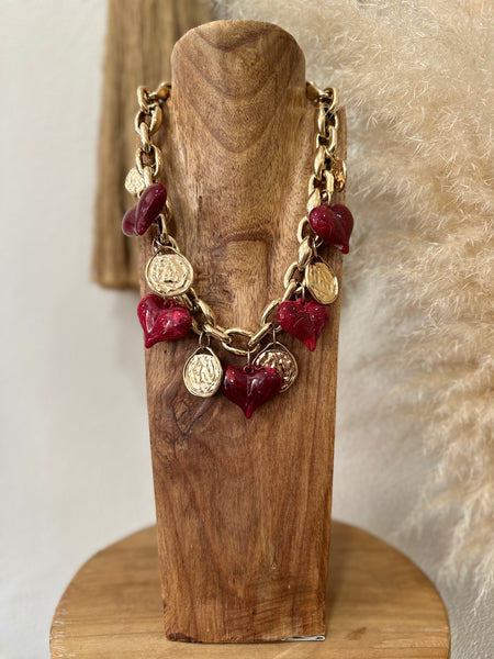 Colar curto em corrente dourada, com detalhes em acrílico, corrente de ajuste e fecho lagosta