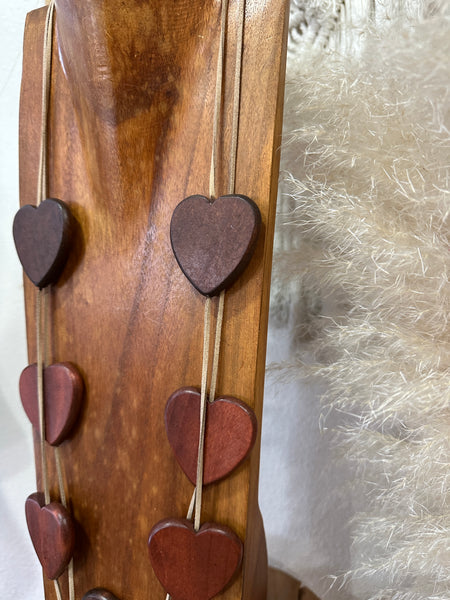 Colar comprido com duas voltas em camurça, com detalhes em madeira pintada, corrente de ajuste e fecho lagosta.