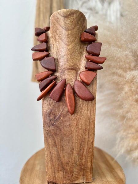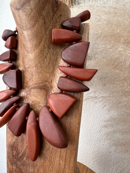 Colar curto em madeira ultraleve pintada, corrente de ajuste e fecho lagosta