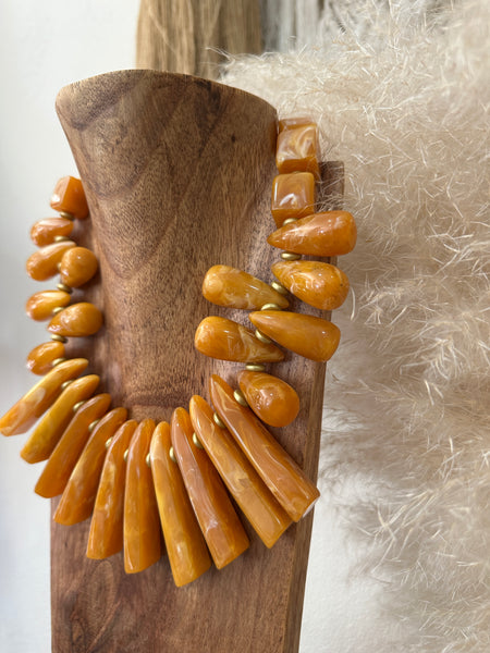 Colar curto em acrílico resistente marmoreado, corrente de ajuste e fecho lagosta
