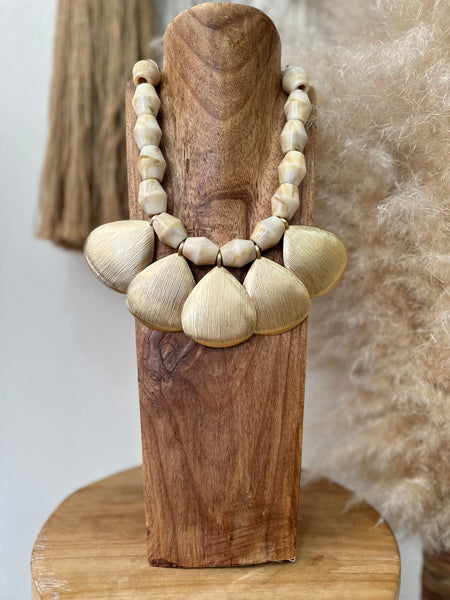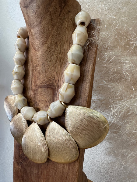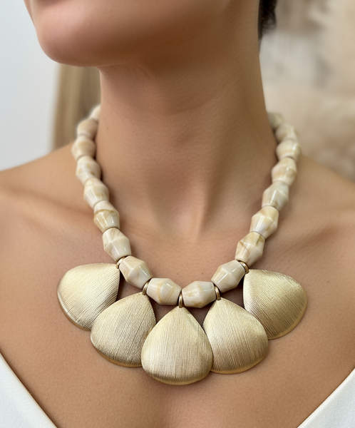Colar curto em acrílico resistente marmoreado com detalhes em aço dourado, corrente de ajuste e fecho lagosta