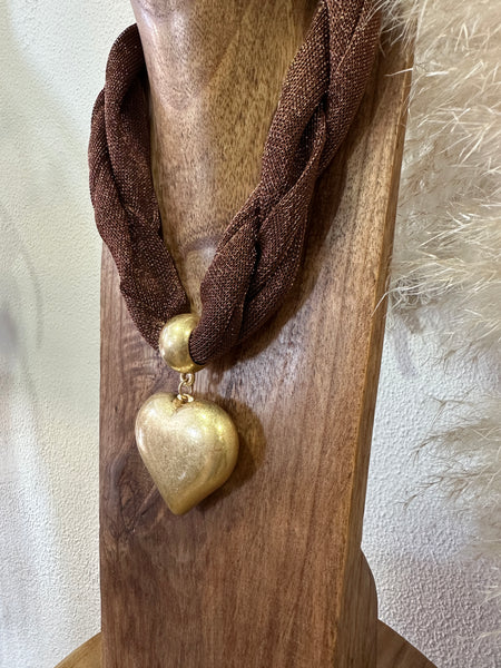 Colar curto em malha com brilho e medalhão em dourado, corrente de ajuste e fecho lagosta