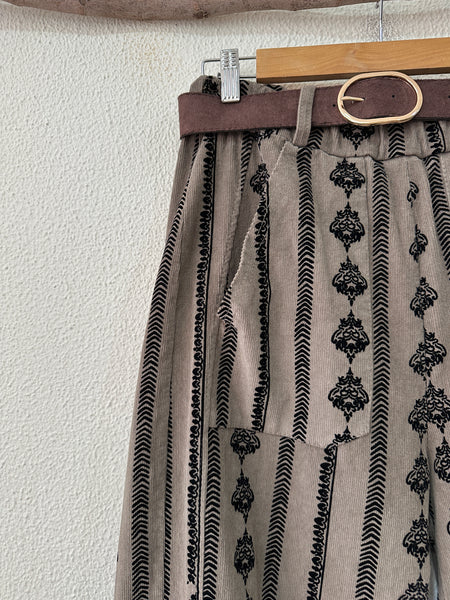 Calças em microbombazina bordadas CAMILLE