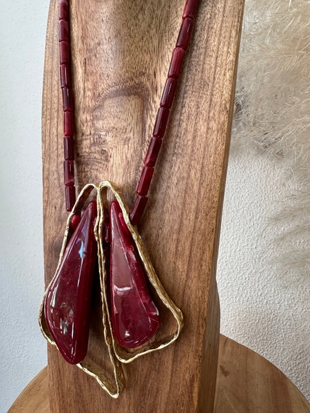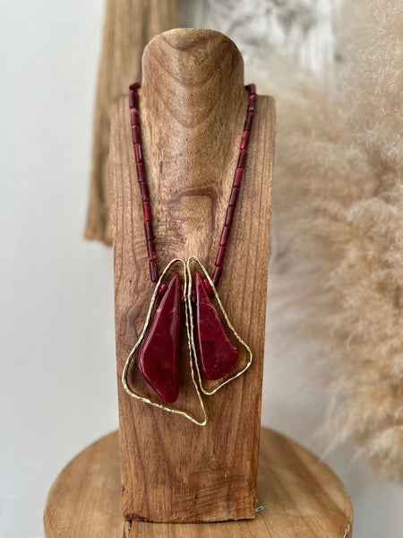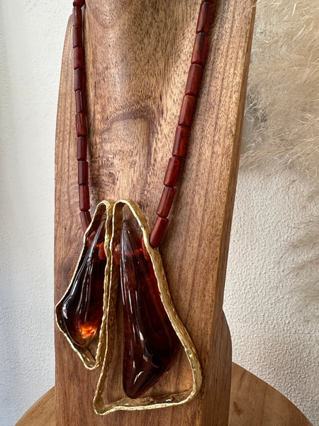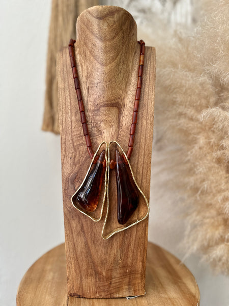 Colar em acrílico com seta em dourado, corrente de ajuste e fecho lagosta