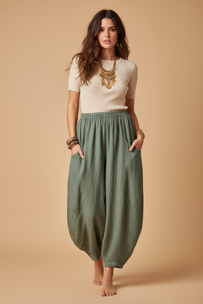 Calças Barril Linho — Frente