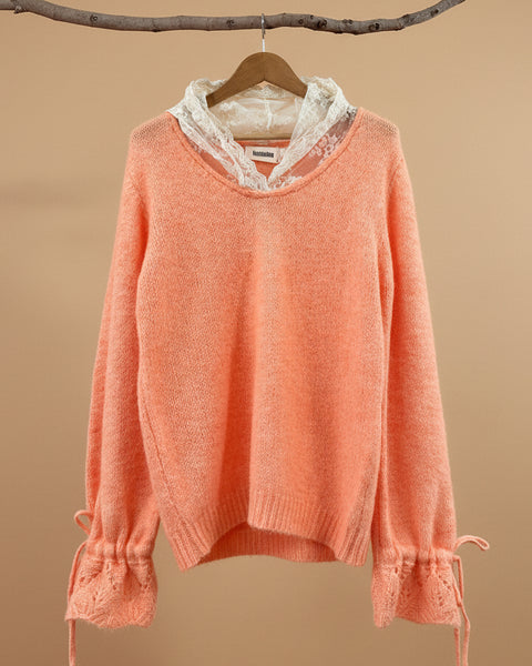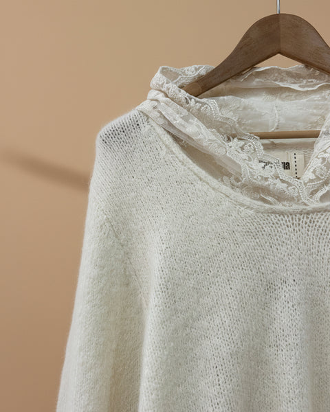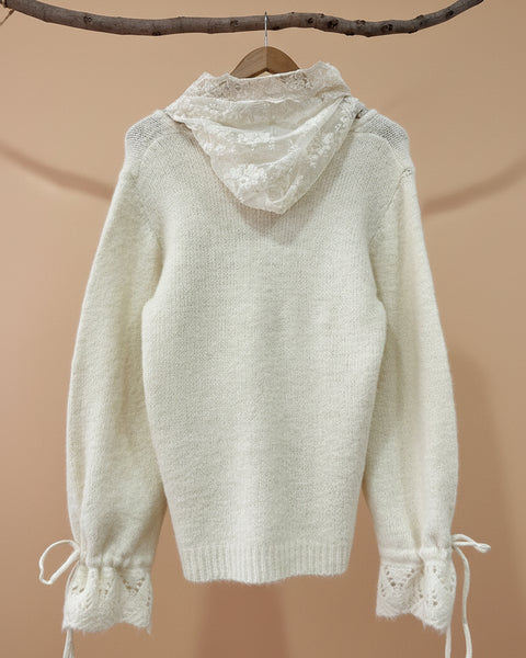 Camisola de malha c/ capuz em renda CHARME