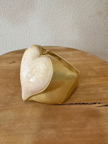 Pulseira rígida em aço com detalhe em acrílico, com abertura com mola