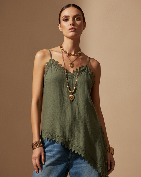 Top alças khaki detalhe